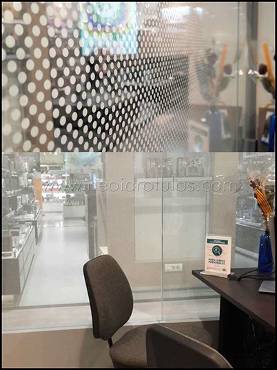 Lámina efecto espejo sobre cristal esmerilado