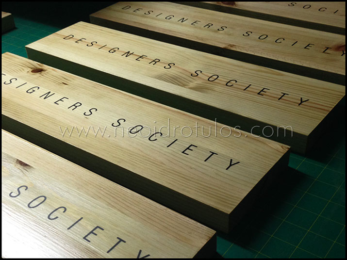Vinilo de corte sobre soporte madera / Placa / Señalética informativa