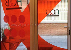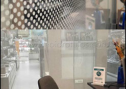 Lámina efecto espejo sobre cristal esmerilado