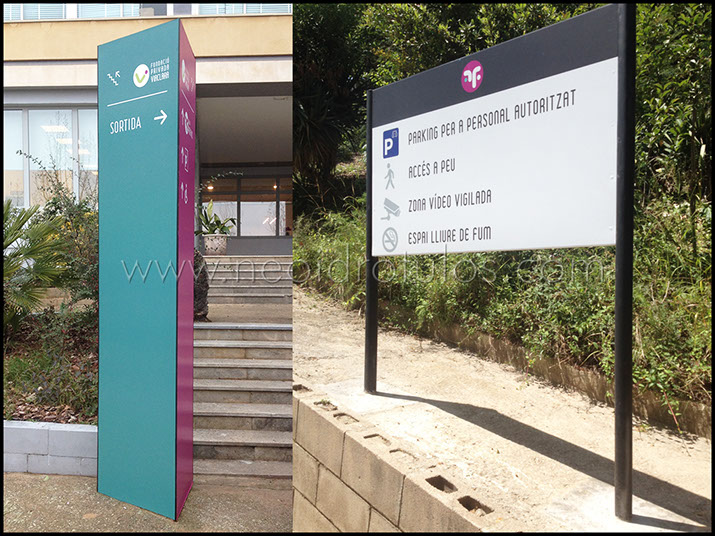 Vinilo impreso y laminado sobre estructura aluminio / Totem y poste para rótulo / Directorio